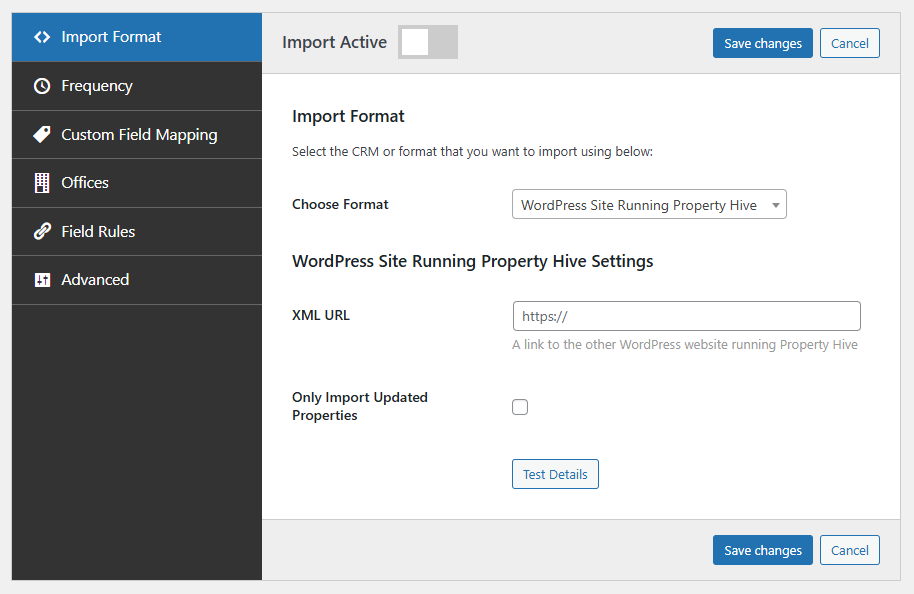 - Create a new import in WordPress under ‘Property Hive > Import Properties‘